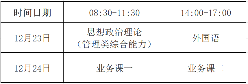 2024年全國碩士研究生招生考試初試將于2023年12月23日、24日舉行。具體考試時間如下所示: