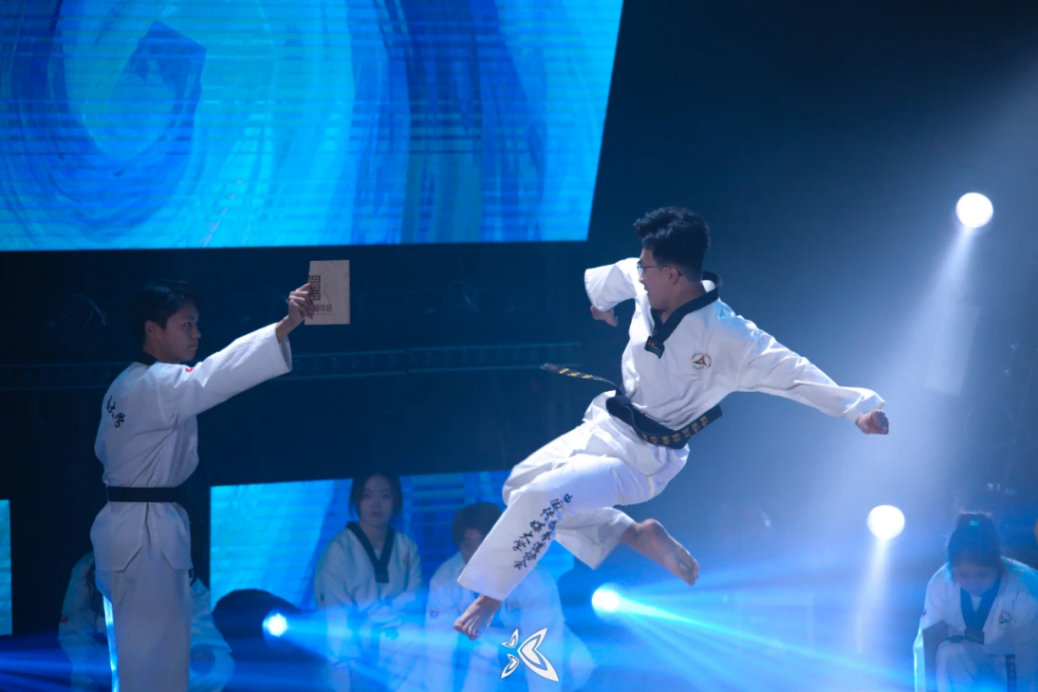 中國傳媒大學跆拳道協會在“百團大戰”現場表演