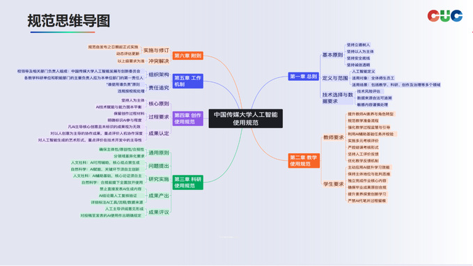 副校長柴劍平發(fā)布并詳細(xì)解讀了《中國傳媒大學(xué)人工智能使用規(guī)范》。規(guī)范包括六章內(nèi)容:第一章總則明確了以人為主體的原則;第二、三、四章分別對教學(xué)、科研、創(chuàng)作場景中使用人工智能進(jìn)行了規(guī)范;第五章明確了具體的工作機(jī)制;第六章附則對相關(guān)事項(xiàng)作了說明。柴劍平表示,規(guī)范具有三大特點(diǎn):一是以人為主體,構(gòu)建人機(jī)分工協(xié)同新范式。明確教師和學(xué)生的主體地位,明確人工智能的輔助和協(xié)同地位,堅(jiān)持師生在創(chuàng)意構(gòu)思、邏輯推理、價(jià)值判斷等核心環(huán)節(jié)的不可替代性。二是以技術(shù)為引擎,全領(lǐng)域全鏈路推進(jìn)人工智能,涵蓋了教學(xué)、科研、創(chuàng)作、管理的所有場景。三是以“規(guī)范+細(xì)則”為路徑,抓鐵有痕確保落地。學(xué)校層面成立人工智能發(fā)展與創(chuàng)新委員會(huì),負(fù)責(zé)學(xué)校的人工智能推廣應(yīng)用工作,要求各個(gè)教學(xué)單位、職能部門的主要負(fù)責(zé)人是人工智能的第一責(zé)任人。他表示,制定和發(fā)布規(guī)范的愿景就是以總書記回信精神為指引,鑄教育家精神之魂,馭人工智能引擎之勢,書寫中傳強(qiáng)為的亮麗答卷。