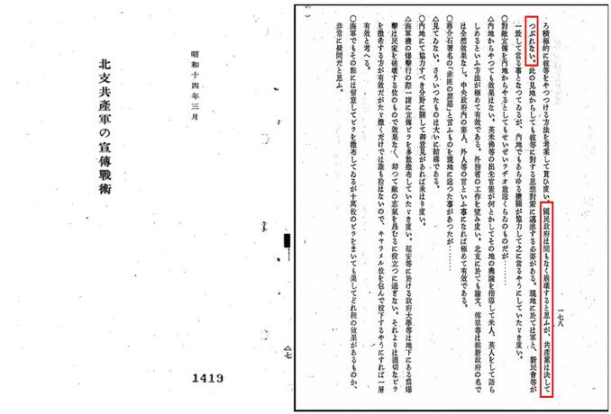 ▲ 日方認(rèn)為:“共產(chǎn)軍是最重視宣傳的軍隊(duì)。”“中國(guó)共產(chǎn)黨的政策是宣傳第一。”“在宣傳方面,中國(guó)共產(chǎn)黨是專家中的專家。”
