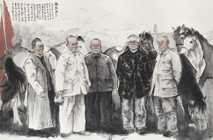 廖祥忠表示,在紀(jì)念中國(guó)人民抗日戰(zhàn)爭(zhēng)暨世界反法西斯戰(zhàn)爭(zhēng)勝利80周年這一重要時(shí)刻,學(xué)校舉辦這次美術(shù)作品展,既是貫徹落實(shí)立德樹人根本任務(wù)的重要實(shí)踐,更是將其作為提升藝術(shù)人才培養(yǎng)質(zhì)量、服務(wù)國(guó)家文化戰(zhàn)略的重要契機(jī)。此次展覽既是對(duì)教育部“以創(chuàng)作實(shí)踐檢驗(yàn)育人成效”要求的積極響應(yīng),更是一場(chǎng)特殊的“綜合考試”,重點(diǎn)考察了博士生三類素養(yǎng):一是政治素養(yǎng)。博士生們通過重大歷史題材創(chuàng)作,展現(xiàn)出堅(jiān)定的政治覺悟、濃厚的家國(guó)情懷和強(qiáng)烈的文化使命感,交出了合格的思想答卷;二是專業(yè)造詣。師生在時(shí)間緊、任務(wù)重的情況下,秉持專業(yè)精神,創(chuàng)作出一批高質(zhì)量作品,體現(xiàn)了扎實(shí)的藝術(shù)功底;三是精神風(fēng)貌。中國(guó)畫博士班自成立以來始終受到社會(huì)各界的廣泛關(guān)注,本次創(chuàng)作全面展現(xiàn)了同學(xué)們將個(gè)人藝術(shù)追求融入國(guó)家文化發(fā)展的專業(yè)氣質(zhì)與擔(dān)當(dāng)精神。面對(duì)未來,廖祥忠提出學(xué)校將重點(diǎn)推進(jìn)三項(xiàng)任務(wù):積極應(yīng)對(duì)人工智能等新技術(shù)對(duì)藝術(shù)創(chuàng)作的挑戰(zhàn);大力推動(dòng)中國(guó)畫國(guó)際傳播與文化影響力提升;持續(xù)培養(yǎng)具有家國(guó)情懷、文化底蘊(yùn)與創(chuàng)新精神的高層次人才。他表示,這批經(jīng)過系統(tǒng)培養(yǎng)的博士生必將成為中國(guó)畫傳承與發(fā)展的中堅(jiān)力量,以有思想溫度和藝術(shù)高度的精品力作記錄時(shí)代、服務(wù)時(shí)代,譜寫中國(guó)畫歷史新篇章。