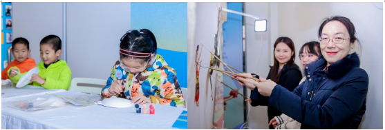 現場的皮影、臉譜體驗區,以及由中國傳媒大學外國語言文化學院“雅涵書院”組織的書法體驗區,成為展覽的互動焦點。觀眾們通過親手操作皮影、繪制臉譜和書寫書法,直觀領略非遺藝術的魅力。這些環節巧妙融合了精巧的造型、絢麗的紋飾與沉浸式創作,促進跨文化藝術的交流與共鳴。