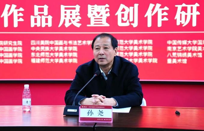 孫堯對展覽成果給予高度肯定。他指出,此次展出的博士生作品水平精湛、質量出眾,集中展現了當代中國畫高端人才培養的豐碩成果,實現了以創作實踐檢驗育人成效的預期目標,令人倍感振奮。面向中國畫的未來傳承與發展,他向博士生提出三點期望:第一,胸懷崇高使命,勇擔時代文化重任。中國畫作為中華藝術的瑰寶,具有獨特的審美體系與深厚的文化底蘊,其傳承與創新的歷史使命落在青年一代肩上。學子們要涵養深厚的家國情懷,將個人藝術追求融入國家與民族發展進程中,具備與國際一流藝術家對話的視野與能力。第二,積極擁抱科技變革,善用人工智能賦能藝術創作。在人工智能時代,不應回避技術發展,而應主動將其轉化為藝術創作的全方位助手與能力放大器。中國畫的未來發展必然與人工智能深度融合,博士生除夯實專業基本功外,還應注重培養人工智能素養,豐富創作方法論與表現形式。第三,堅持深入生活,博采眾長以厚植創作底蘊。藝術創作離不開對現實生活的深刻體察,要“行萬里路,讀萬卷書”,應著力創新培養機制,積極引入名家交流,有效拓展學生的藝術視野與創作格局。此外,必須加強對歷史的正確認知,積淀廣博的知識結構與深厚的文化修養,方能創作出經得起時代檢驗的精品力作。孫堯鼓勵學子對作品精益求精,力求以更多銘刻時代印記、傳承民族精神的精品力作,鑄就無愧于時代的美術高峰。