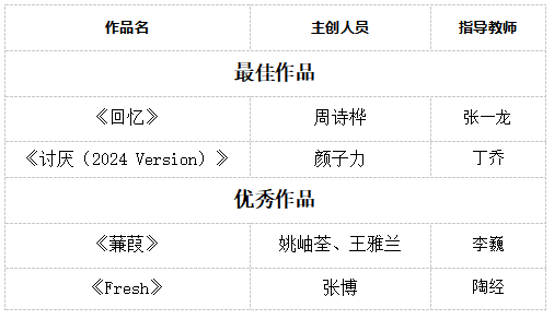 本年度音樂、影視類選送的16部作品全部獲獎,在聲音學院作品交流活動中獲得“全滿貫”。100%的獲獎率不僅刷新了此前的記錄,更創造了近年來的最佳戰績,充分體現了學院在人才培養和作品選送上的高水平與絕對實力。
