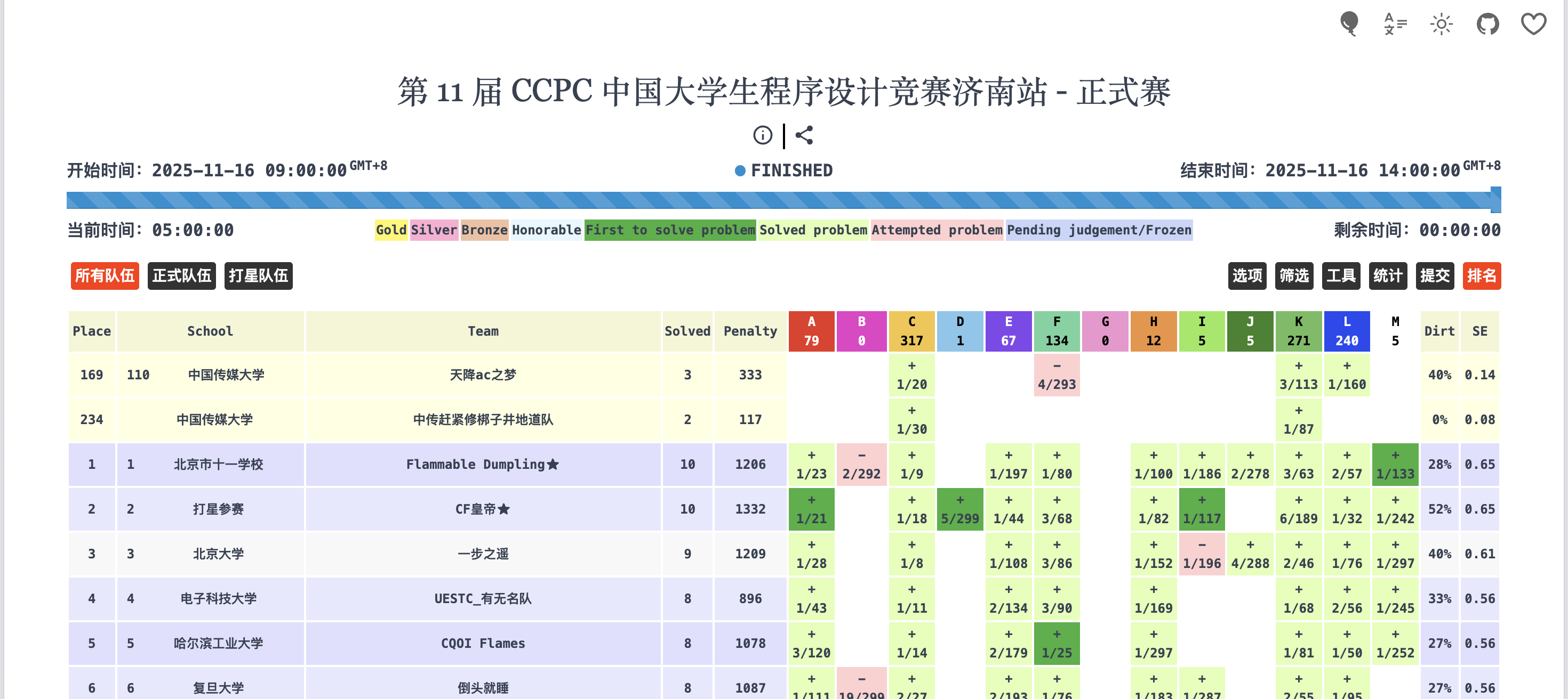 11月16日,第11屆CCPC濟南站賽事開啟,來自清華大學、北京大學、中國傳媒大學等全國170所高校的260支隊伍展開了激烈角逐。此前在哈爾濱站獲獎的 “天降 AC 之夢隊”延續拼搏勢頭,以3道題的解題成績再次斬獲銅牌。