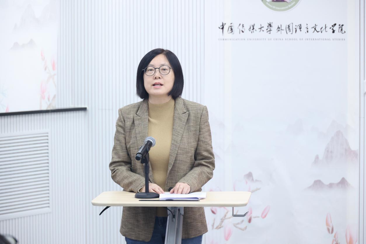外國語言文化學院副院長劉穎在發言中對大賽組委會以及葡語專業師生的辛勤付出表示感謝,她表示本屆大賽是兩校深化合作、探索“復語、復合、復能”國際傳播人才培養模式的一次成功實踐,外國語言文化學院將持續激勵青年以葡語為橋,用鏡頭向世界展現中國創新活力。